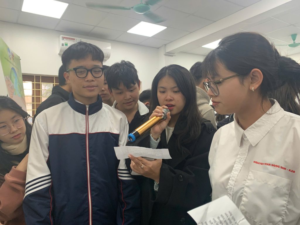 Không khí ngày hội đổi giấy lấy cây thực sự sôi nổi với minigame đố vui về môi trường. Những câu hỏi tưởng chừng quen thuộc nhưng lại khiến nhiều bạn phải suy nghĩ: về rác thải giấy, tái chế, hay những thói quen xanh trong đời sống hằng ngày. Phần thưởng chỉ là những món đồ đơn giản, nhỏ bé nhưng niềm vui nó mang lại thì lớn hơn rất nhiều. Đặc biệt, một cuộc phỏng vấn ngắn ghi lại cảm nghĩ của người tham gia đã cho thấy sự quan tâm của học sinh Trí Đức tới hoạt động bảo vệ môi trường. Ai cũng cảm thấy mình đang góp một phần nhỏ trong hành trình bảo vệ môi trường, thực hành lối sống xanh và làm những điều có ích.