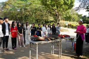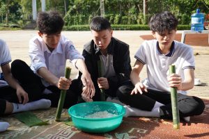 Không chỉ dừng lại ở việc “xem” và “nghe”, các em khối 10 được trực tiếp tham gia hoạt động STEAM trải nghiệm: khám phá cách chiết xuất tinh dầu, khám phá mô hình qua kính hiển vi, đến tìm hiểu mô hình kỹ thuật,… Bên cạnh trải nghiệm Steam, học sinh còn được tự tay nướng cơm nam, làm bánh trôi, chơi bắt gà, đập niêu đất. Những hoạt động này giúp học sinh không chỉ lĩnh hội kiến thức mà còn rèn luyện kỹ năng giải quyết vấn đề, khả năng hợp tác và tư duy sáng tạo, những năng lực quan trọng của công dân thế kỷ 21.