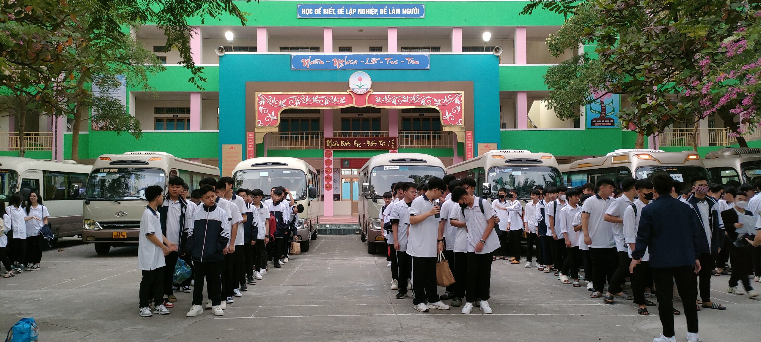 Ngày trải nghiệm đầu tiên là của Khối 10 – K27. Chuyến đi khởi hành từ 6h00 sáng. Gần 200 học sinh K27 Trí Đức đã tập trung rất đúng giờ, nghiêm túc thực hiện theo sự chỉ dẫn của các thầy cô phụ trách. Tất cả học sinh lên đường với tinh thần háo hức, vui vẻ, tràn đầy khí thế tuổi trẻ trong hành trình khám phá.