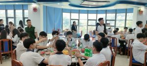 Kết thúc chương trình trải nghiệm tri thức tại các phòng trưng bày, các điểm vui chơi hòa mình với thiên nhiên vào buổi sáng, bữa trưa quây quần tại không gian núi rừng Tây Bắc tăng thêm thời gian, cơ hội để học sinh giao lưu gắn kết. Ở phương diện tự nhiên, Hòa Bình trong trải nghiệm K27 gợi bóng dáng không gian xanh, thân thiện, ấm áp Trí Đức.