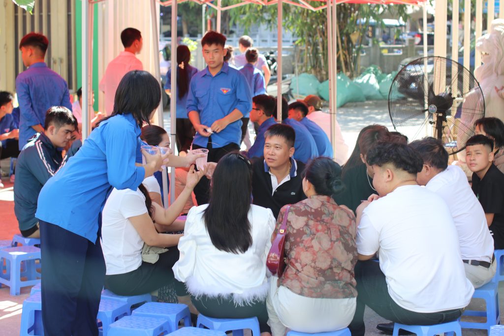 Học sinh khối trên lễ phép mời nước và chuẩn bị ghế ngồi cho Phụ huynh đưa con tới nhập trường