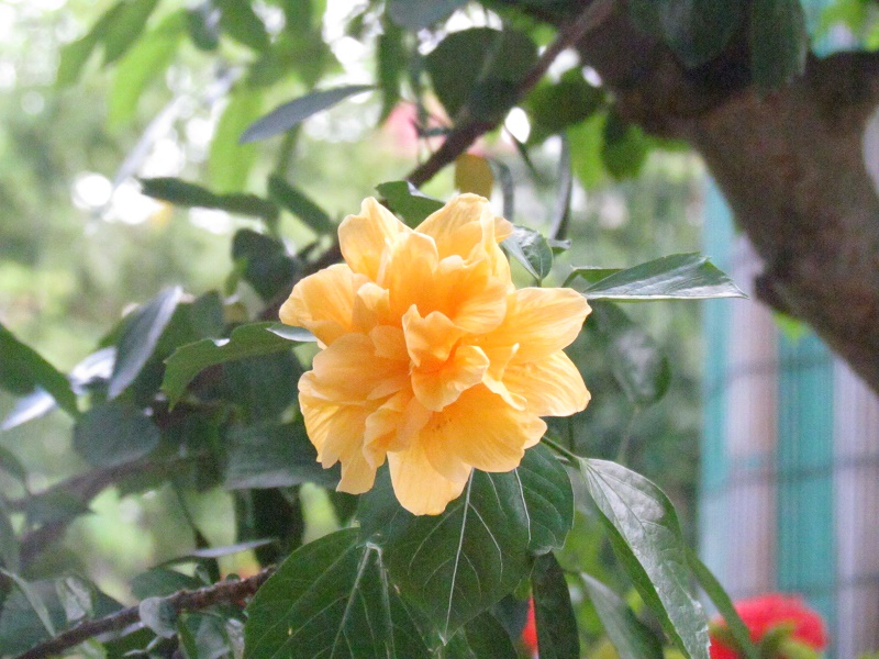 Hoa râm bụt vàng, đỏ rực một góc trời Trí Đức.