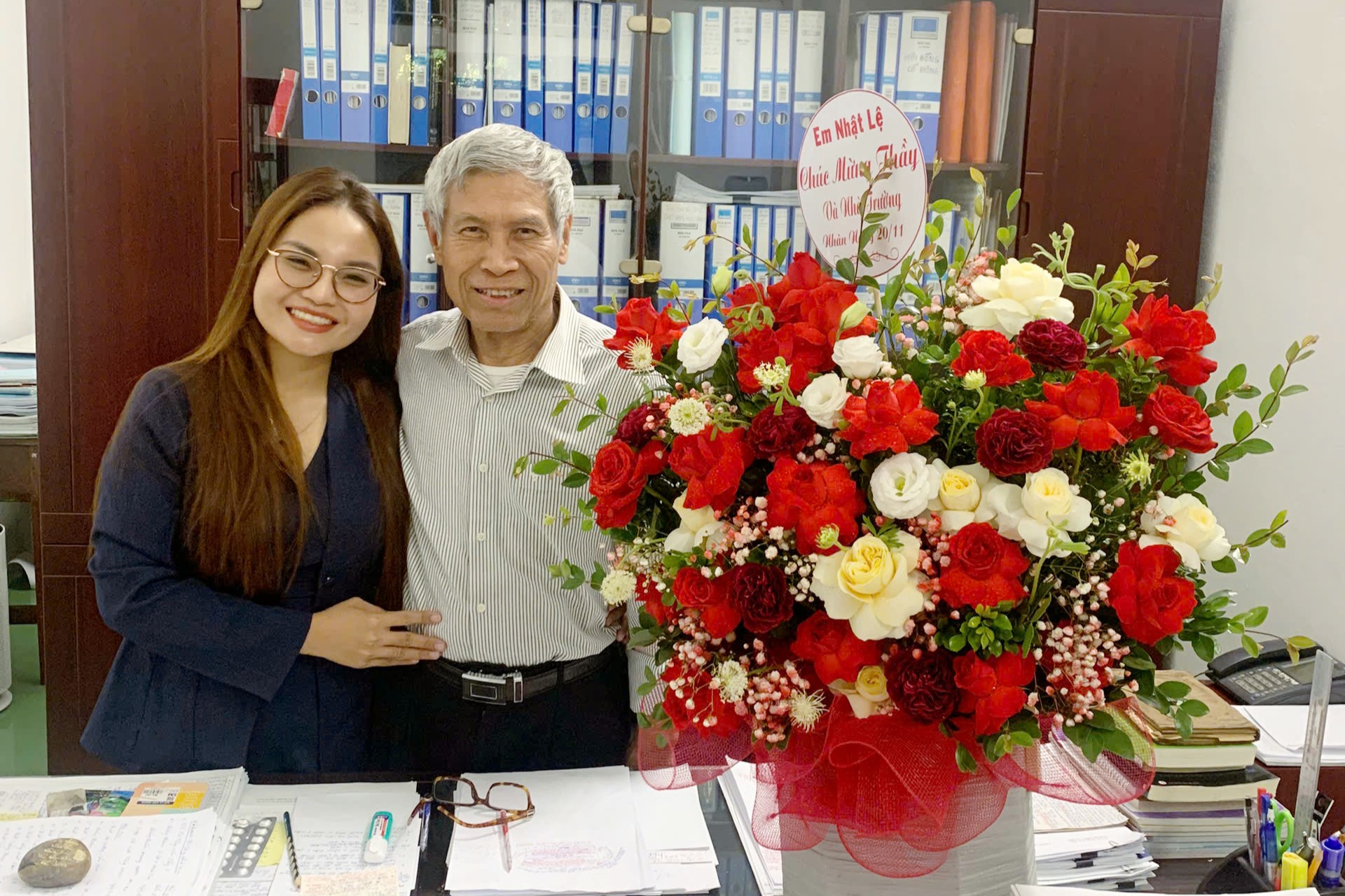 Đặc biệt, tôi vô cùng cảm động trước tấm lòng của GS.TS. Nguyễn Ngọc Hà – Phó Cục trưởng Cục Quản lý Chất lượng, Bộ Giáo dục và Đào tạo, cựu sinh viên khoa Hóa – lớp tôi đã trực tiếp giảng dạy thời còn công tác tại Trường Đại học Sư phạm Hà Nội. Dù giữ trọng trách lớn và công việc buổi sáng 20/11 vô cùng bận rộn, Thầy Hà vẫn thu xếp thời gian trở về thăm Thầy và thăm Trường Trí Đức. Hình ảnh người học trò năm nào nay đã trưởng thành, thành đạt mà vẫn giữ trọn sự khiêm tốn, hiếu nghĩa và thủy chung với Thầy là niềm hạnh phúc và tự hào lớn lao đối với cuộc đời làm nghề của Thầy.