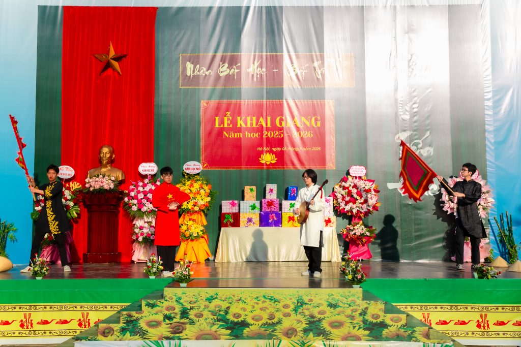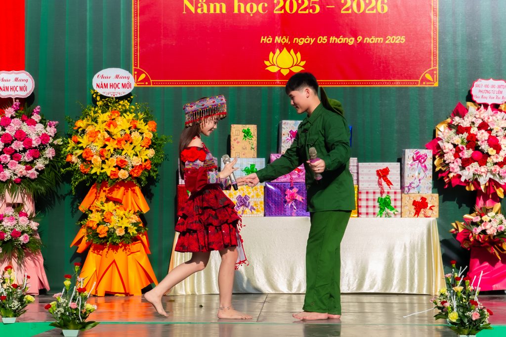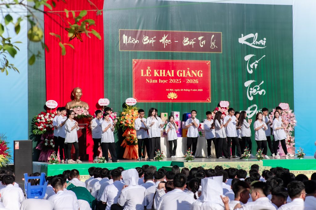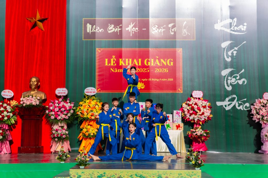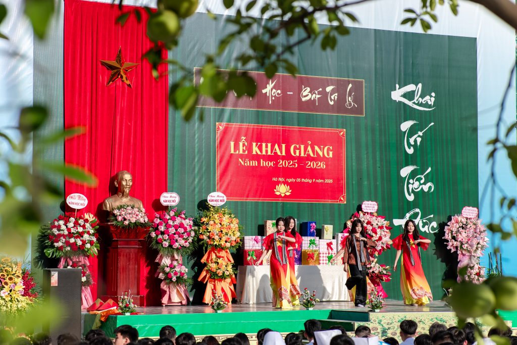 Tiếp nối là các tiết mục văn nghệ chào mừng khai giảng. Những ca khúc về tuổi học trò, về mái trường, về tình yêu Tổ quốc vang lên đầy xúc cảm, để rồi cả sân trường như hòa chung một nhịp tim trong ngày hội lớn. Đặc biệt, tài năng của các em học sinh khóa mới K29 cũng khiến bầu không khí thêm phần bùng nổ. Những gương mặt tươi mới, ánh mắt đầy kỳ vọng và tiếng hát, điệu múa hồn nhiên đã tiếp thêm sức trẻ và niềm tin cho chặng đường phía trước trong năm học mới.